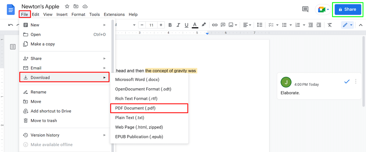 - Collaborate with others: You can invite others to collaborate on your Google Docs PDF document by clicking on the “Share”ย button in the top right corner of the screen. This allows others to view, edit, or comment on the document, depending on the access level you give them.