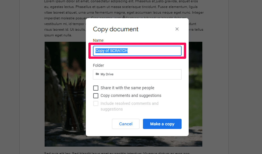 Donโt want to go through the hassle of opening a different tab to create a new document? An easier way to delete the version history on Google Docs is by making a copy of the original document.