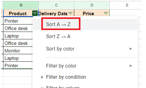 Hereโs how to use the Filterย to sort in Google Sheets: