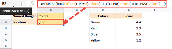 Another case in which the ADDRESS Google Sheets function comes in quite handy is in locating a named range or getting the complete address that the named range covers.