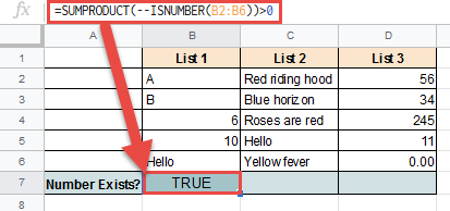 - Finally, the โ>โ operator was used to check if the value returned by SUMPRODUCT is more than 0. If there were no numeric values in the range, the sum of the array would be 0. Therefore, SUMPRODUCT would return a 0. In our example, since I got a 2 (which is more than 0), I got the final output is TRUE.